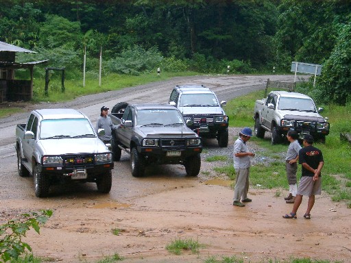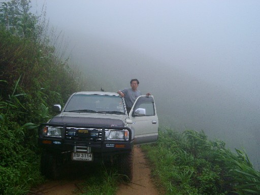 ย้อนกลับมาทางขึ้นอีกทีครับ สี่คันนี่แหละ พี่เสือ นาย E พี่เขาสามยอด แล้วก็ผม ติดตามด้วยกำลังพลอีก 4 คน ก็มีคุณ Riderman คุณต้อง คนนั่งข้างพี่เขาสามยอด แล้วก็คนนั่งข้างพี่เสือเฒ่าครับ สภาพผิวถนนชื้นแฉะไปหมดเพราะฝนโปรยปรายมา 7 วันแล้ว เจ้าหน้าที่ที่หน่วยกิ่วสามล้อแงมางั้น