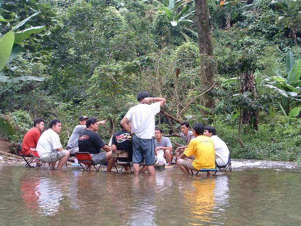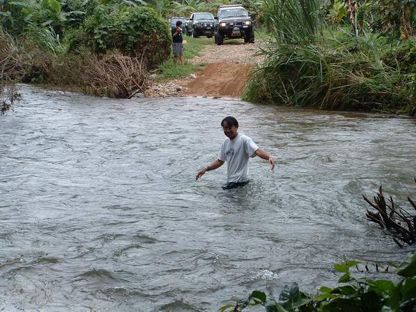 ตากอล์ฟ...ผู้นำทริปนี้ ลงลุยวัดระดับน้ำให้เพื่อน ๆ ดู