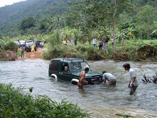 คันนี้กลุ่มคนรักป่า เพื่อนนายพัฒน์ รถขับสองใจถึงมาก น้ำท่วมซะเต็มรถเลย