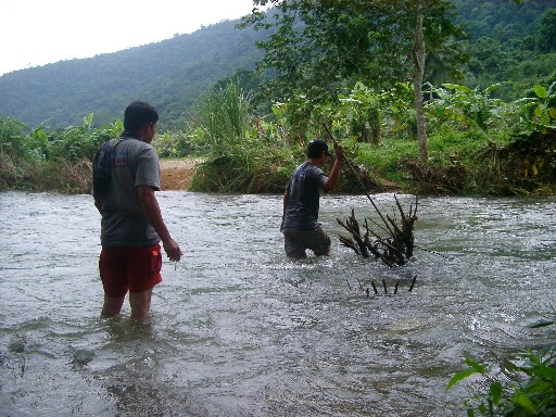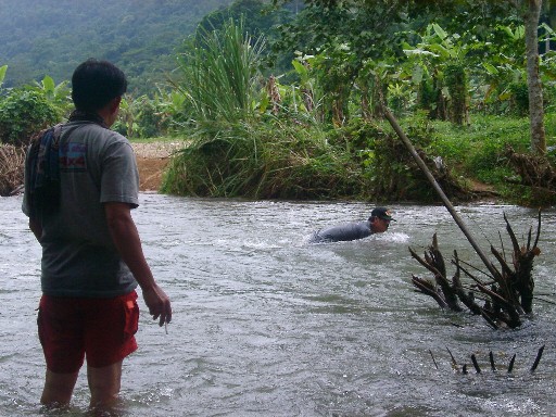 หลังจากจับจ่ายซื้อเสบียงมื้อเที่ยง รวมทั้งเหล้ายาปลาปิ้งแล้วก็เริ่มเดินทางเข้าสู่คลองมะเดื่อกันครับ หลังจากขบวนเลี้ยวซ้ายจากถนนหลักที่จะไปน้ำตกนางรองเพื่อเข้าเส้นทางซึ่งอยู่ติดกับรั้วของโรงเรียนบ้านดง เป็นทางลาดยางขนาดเล็ก พอถึงแยกเข้าวัดก็ให้ทะแยงขวา วิ่งไปสักพักก็จะเจอแยกให้ไปทางซ้ายอีกนั่นแหละ ไปทางโรงเรียนเขาหัวแก้ว ผ่านบ้านเพื่อนแชมป์ด้านขวา วิ่งสุดทางลาดยางก็จะเริ่มเข้าทางลูกรัง เป็นจุดเริ่มต้นของเส้นทางออฟโรดแบบเบาๆ จากสภาพถนนที่ขับผ่านเราเดาได้เลยว่า ฝนตกในพื้นที่มาก เพราะตลอดเส้นทางมีน้ำขังเป็นช่วงๆ สลับกับหินลอยพอให้เราได้สนุกบ้าง