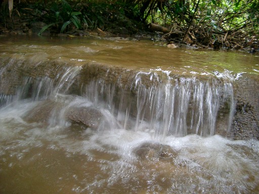 ภาพลำธารที่ไหลผ่านที่ เป็นลำธารจากน้ำตำนิคุคุ เป็นน้ำตกหินปูน พื้นไม่ลื่น