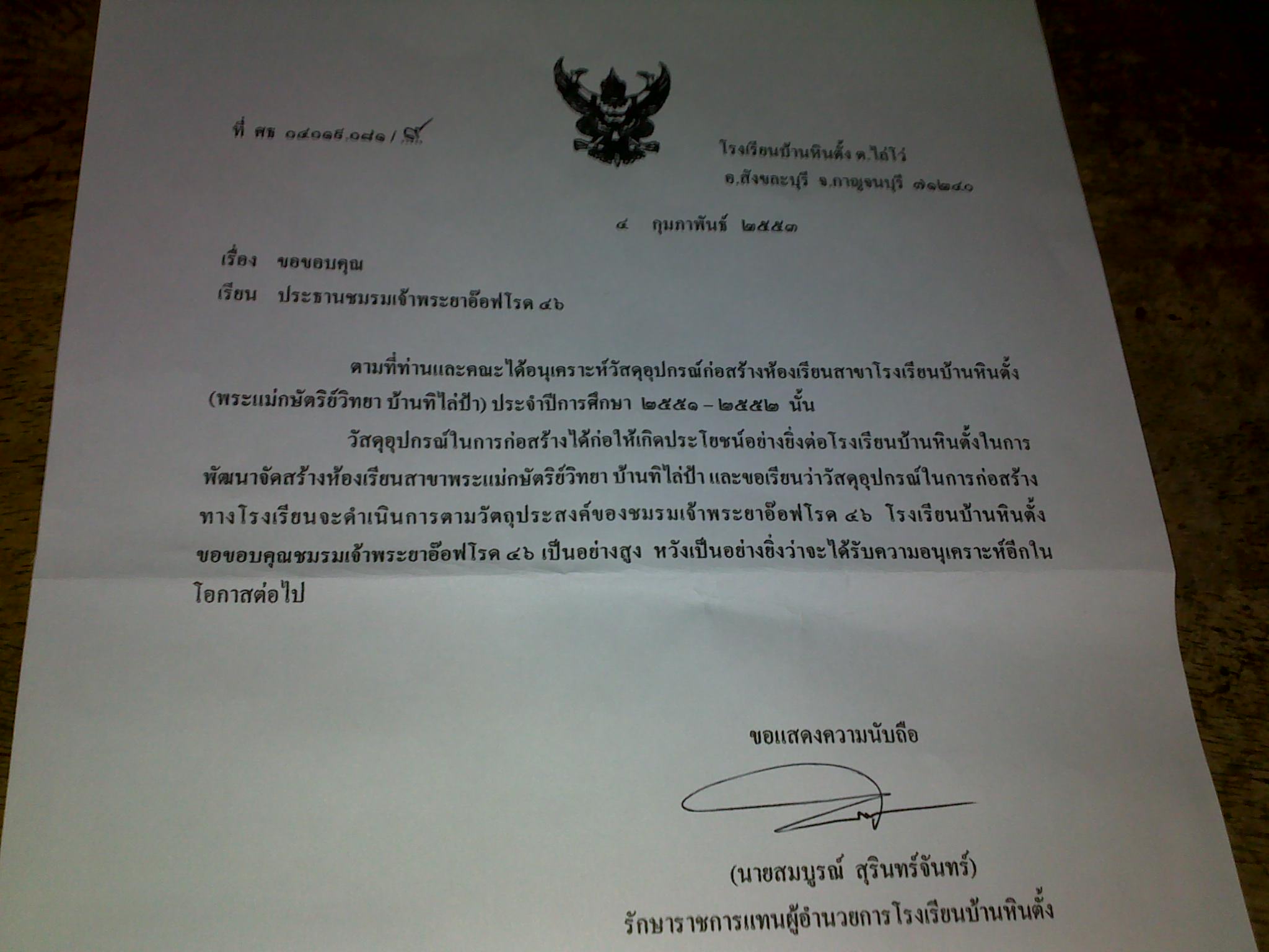 เรียน สมาชิกชมรมเจ้าพระยาออฟโรด๔๖ ,ท่านที่ต้องการร่วมสร้างอาคารเรียนและท่านที่บริจาคสิ่งของ