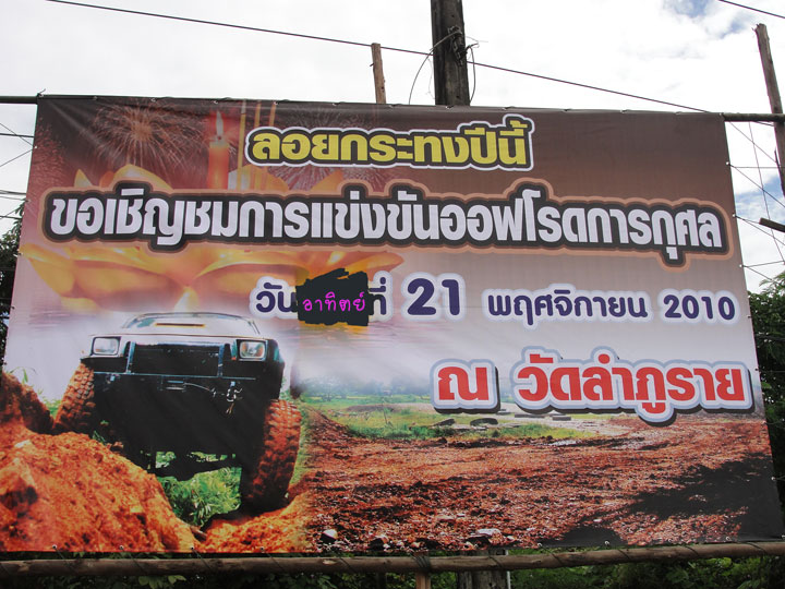 เนื่องจากชมรมตราดออฟโรด ได้จัดงานแข่งขันออฟโรดการกุศล ในงานสีสันบนสายน้ำ (ลอยกระทง)เป็นครั้งที่ 2 ณ สนามวัดลำภูราย อ.เขาสมิง จ. ตราด สอบถามรายละเอียดได้ที่