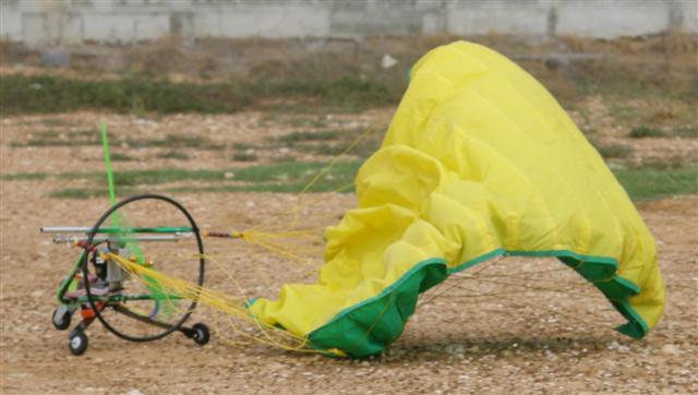 เมื่อร่มพับลง เครื่องก็จะหงายท้องกลิ้งม้วยเอาร่มเข้าไปด้วย ตรงนี้เองครับที่บอกว่าไม่เหมือนที่เราเล่นเครื่องบิน เพราะทุกครังที่เท็คออฟ...ก็ขึ้นไปแบบนิ่มๆ แต่ร่มนี่ ต้องใช้จังหวะที่ถูกต้อง..ทั้งลมและกำลังมอเตอร์ รวมไปถึงพื้นรันเว......ควรจะเรียบครับ....อย่างถนนลาดยางนี่ ท่าทางจะดีมากมากเลยครับ
