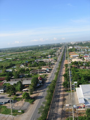 คุณต่อ รู้เส้นทางกลับดี ว่าต้องบินผ่านหมู่บ้านหลายหมู่บ้าน อีกทั้งลมเริ่มแรงขึ้น คุณต่อ เลยเปลี่ยนแผน บินอ้อมเล็กน้อย ไปเข้าเส้นทางท้องนาน่าจะเซฟกว่า ในภาพ คุณต่อกำลังบินข้าม ถนนบางปะกง - ฉะเชิงเทรา ครับ