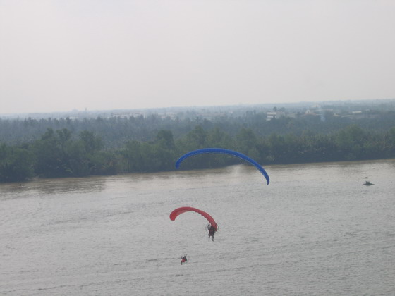 พี่หงา ฤทธิรงค์ U-T91 มาบินโชว์ตัวก่อนผมชั่วโมงกว่า กำลังไต่ความสูงขึ้นไปเหยียบก้อนเมฆ พี่หงามองลงมาคงเห็นแม่น้ำบางปะกงเล็กเท่าเส้นก๋วยเตี๋ยว