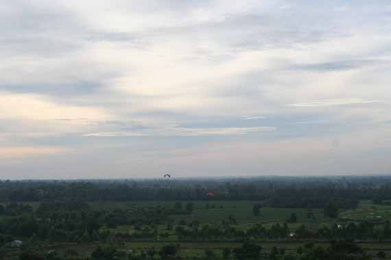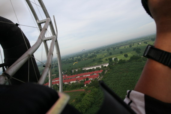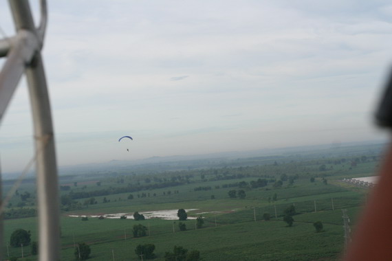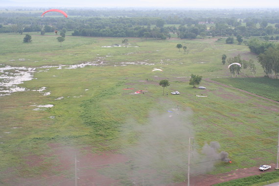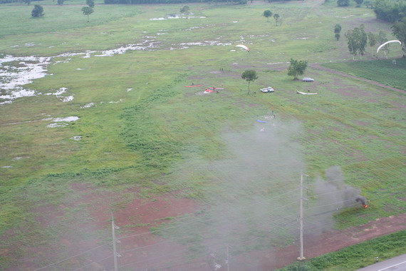 ผมมองไปทางซ้าย เห็นร่มอีก 2 - 3 ตัว เร่งแซงมาจากทางซ้าย มุ่งหน้าสู่ควันไฟอย่างรวดเร็ว ชมภาพครับ