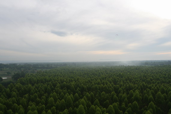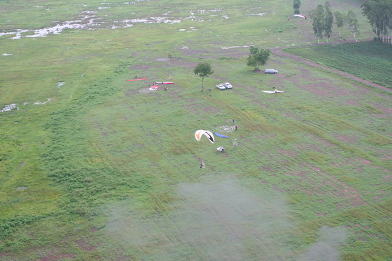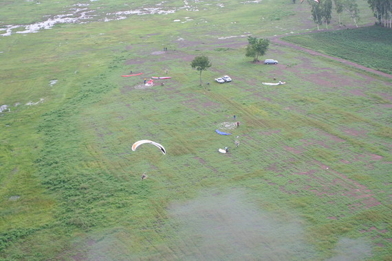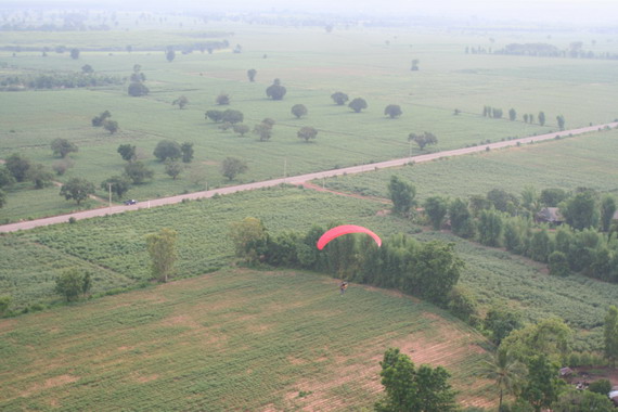 หันมองทางขวา ต่ำลงไป เห็นร่มนักแข่งอีกท่านหนึ่ง บินต่ำโลว์พาส ระดับยอดไม้ ลัดเลาะ เข้าหาจุดหมาย....อย่างรวดเร็ว ทุกคนมุ่งสู่เป้าหมาย