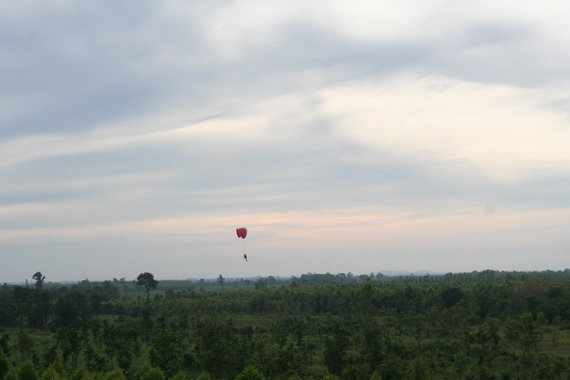 มาชมภาพการบินปาถุงแป้ง ของนักแข่งท่านหนึ่ง ที่ใช้ร่มสีแดง บินเหยียบสายตลอด ณ สนามจุดที่ 2 ครับ
