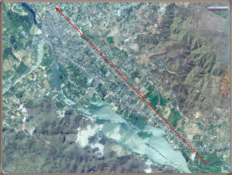 ...พอผ่านตัวเมืองกาญจน์แล้ว จะสังเกตุเห็นสุสานสัมพันธมิตร สมัยสงครามโลกครั้งที่สอง แล้วบินตัดเข้ามาข้ามแม่นำได้เลย ... หรือจะบินมาอีกฟากแม่น้ำก็ได้ แต่ถ้าลงฉุกเฉิน เซอร์วิสจะต้องอ้อมไปรับไกลหน่อย...