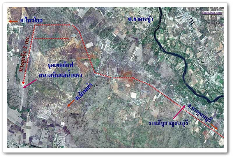 คุณแมวส์ ก็กำหนดพิกัดจุดลงที่ที่แน่นอนไปเลยสิ เดี๋ยวจะเหมือนครั้งที่แล้วไม่รู้ว่าจะลงจุด1หรือจุด2กันแน่ จุดที่เป็นสนามพื้นลูกรัง เป็นที่ใหน ดูกว้างดี ที่เดิมหน้าโรงพักไทรโยคจะมีกำแพงลมขางสนาม