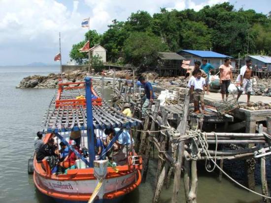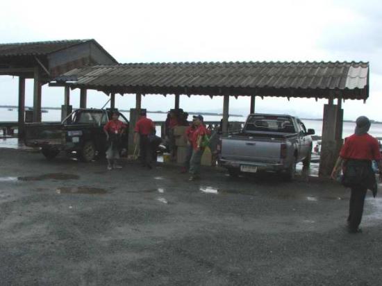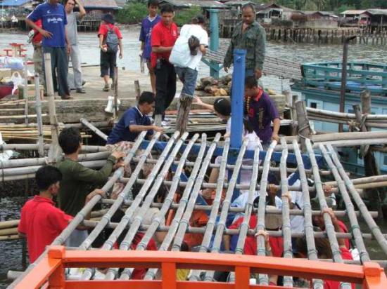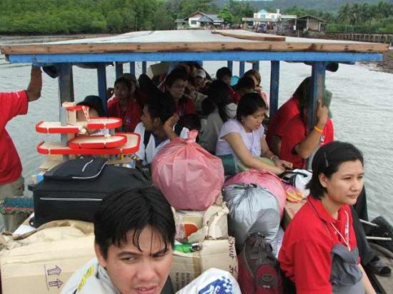 สมาชิกเตรียมลงเรือเพื่อข้ามไปยังโรงเรียนเกาะจิก