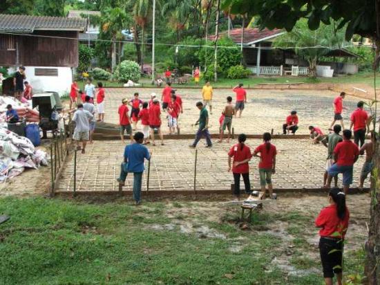 ภาระกิจที่ 1 ช่วยกันสร้างสนามกีฬาเอนกประสงค์ คอนกรีตเสริมไม้ไผ่...โดยสมาชิกทุกคนร่วมแรงร่วมใจกับชาวบ้านช่วยกันทำอย่างเต็มที่...(ยังมีแรงข้าวต้มกุ้งอยู่)