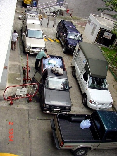 นักวิทยุอาสาสมัคร (VRA) มารับของกัน 5 คัน (คันสีขาวหลังคาผ้าใบไม่ใช่)...