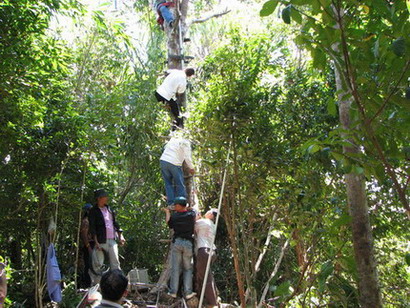 ข้างบนก็ ดึงกันไป เราอยู่ข้างล่าง ประกอบเสาอากาศดีกว่า