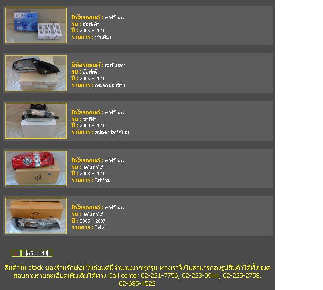 ตัวอย่างรายการอะไหล่รถยนต์