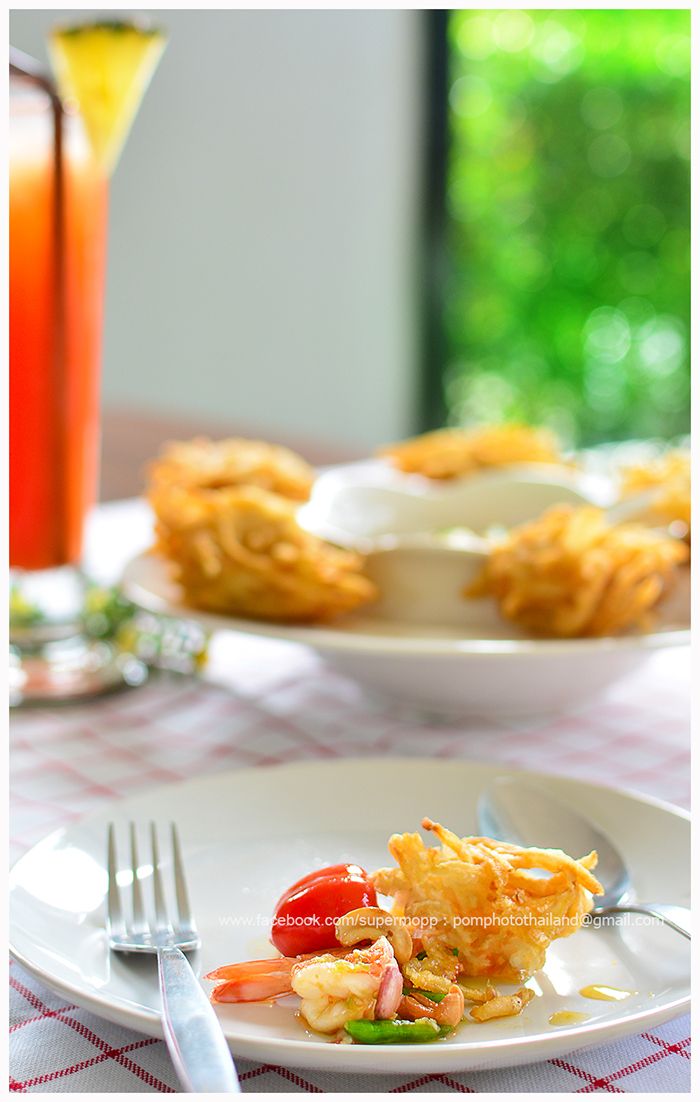 เมนูต่อขอไปแนะนำ ส้มตำทอดทะเล ครับทีเด็ดอยู่ที่เส้นมะละกอทอดกรอบ พอเราจะกินค่อยตักน้ำปรุงรสส้มตำพร้อมอาหารทะเลมาทานพร้อมกัน ถือว่าเป็นการครีเอทอาหารได้สวยงาม และยังอร่อยอีกด้วยครับ