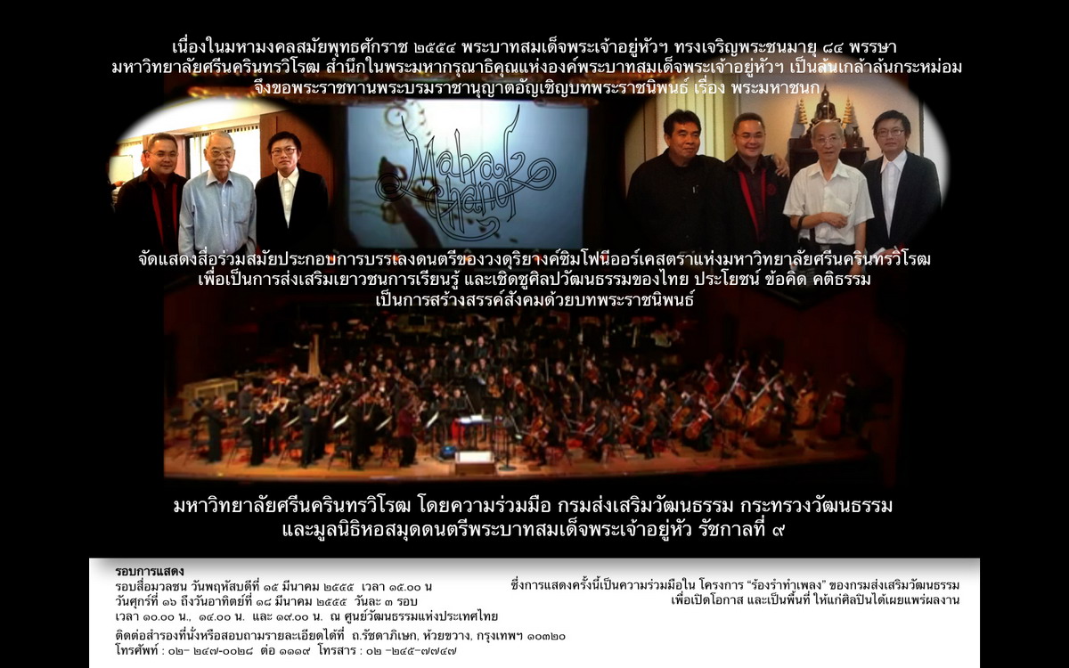จัดโดย ศูนย์พัฒนาอัจฉริยภาพทางดนตรีและศิลปะการแสดง ศูนย์ศิลปกรรมแห่งประเทศไทย มหาวิทยาลัยศรีนครินทรวิโรฒ
