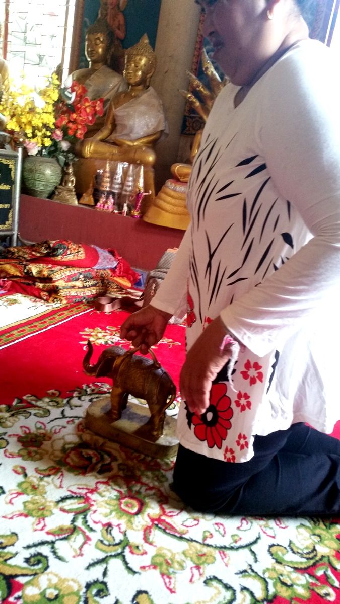 ถึงคราวที่จะต้อง ขออธิฐานว่าจะขออะไร ถ้าคำอธิฐานเป็นจริงใช้นิ้วนางยก ช้างท้องเหลือง ถ้ายกขึ้นก็จะประสพผลสำเร็จ และอีกครั้งก็อธิฐานว่า ถ้าที่ขอจริง ขอให้ยกไม่ขึ้น ผู้หญิงใช้นิ้วนาง ส่วนผู้ชายนิ้งก้อย ผมลองแล้วเป็นจริงครับ ยกไม่ขึ้นจริงๆ