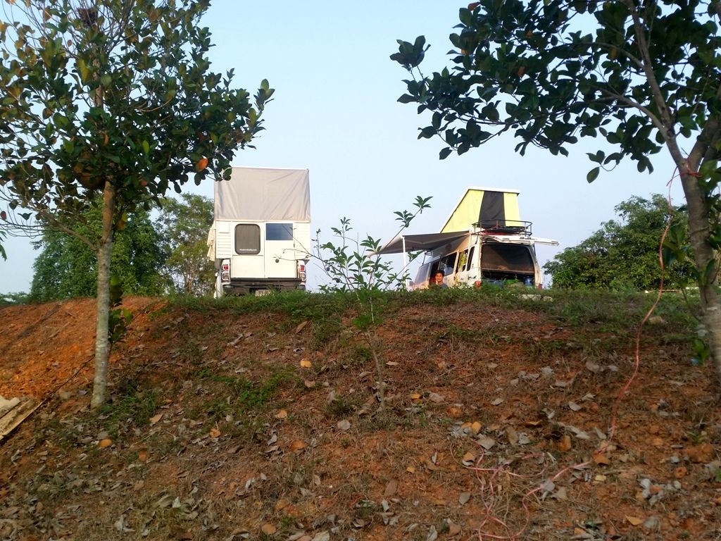 ฝันเดินทางมาก่อน เลยหาที่จอดริมน้ำ แต่ดูแล้วต้องต่อสายไฟยาวมาก เลยเปลี่ยนเป็นที่จอดบนเนินเลย
