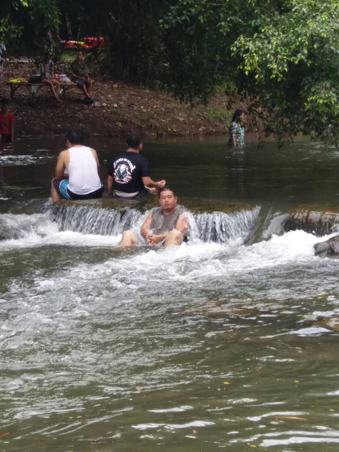 จุดจอดนี่จะเป็นจุดบรรจบของน้ำจากเขื่อนที่ปล่อยมากับน้ำจากน้ำตกสองฝั่งมาเจอกันแล้วไหลรวมให้คนที่มาเล่นร่องแก่งได้สนุกกัน