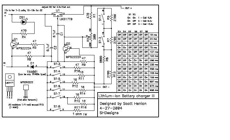 ใช้ได้แต่จะต้องดูแลหน่อยครับLM317Tเป็นICที่จ่ายกระแสได้1.5A และสามารถปรับแรงดันที่ขาadjที่R1,R2และR3,R6,R7,R13โดยเลื่อกค่าตามตารางและR9ถึงR17เป็นตัวLimitกระแสใหลผ่านวงจรแต่ไม่รับประกันว่าค่าอุปกรณ์จะตรงตามค่าและแหล่งจ่ายไฟจะคงที่ตลอดถ้าvoltเข้ามากกว่า12volt voltoutก็จะเปลียนตามกระแสก็เปลียนตามมันก็จะทำให้ถ่านร้อนถ้าจะทำก็จะต้องมีตัวควบคุมความร้อนของถ่านดว้ยและถ้าจะทดลองทำต้องแน่ใจว่าประกอบวงจรถูกต้องปรับแต่งถูกตอ้งซึ้งอาจจะใช้ได้ช่วงแรกและต่อไปถ่านก็จะเริ่มเสียหรือลองไปหาข้อมูลเก่าๆก่อนดีกว่าครับของคุณActionnanจะมีครับ