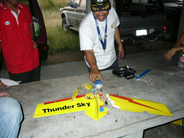 โทษที ปล่อยซ้ำอะครับ ( แจ้งลบไปแล้วคร๊าป ) อาทิตย์ที่ผ่านมานี้ ( 081107 ) มีเพื่อนใหม่มาร่วมชุมนุม อีกหนึ่งท่าน หลังจากเทียวไปเที่ยวมา นั่งชมอยู่หลายครั้ง ก้อตัดสินใจ ร่วมวงก๊ง เอิ้ย รวมวงแหงนหน้ามองท้องฟ้าด้วยกัน อิอิ พี่เขาเลือกเจ้า Sky Raider ปีกบน เป็นเครื่องประจำการการฝึกบิน ซึ่งไม่ผิดหวัง ตัวใหญ่ บินได้นึ่งดี เหมาะแก่การฝึกบินเป็นอย่างยิ่ง ที่สำคัญราคาถูกมักมั๊ก บอกได้คำเดียวว่าเกินคุ้ม อะคับ