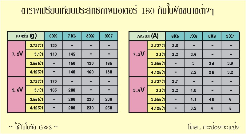 เคยทำเล่น สมัยมอเตอร์ 180 เฟื่องฟู เฟืองอัตราทด 1/6 กว่า ใบพัด 11*4 แบทลิเทียม 2 ก้อน ทำแรงฉุดได้ประมาณ 200 กรัม /1 ชุด 2 ชุดก็ 400 กรัม