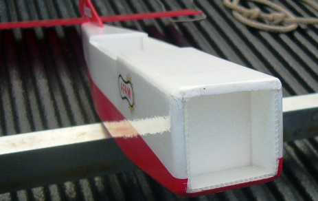 ตัดชิ้นส่วนให้ได้ 2 ชิ้น ชิ้นที่เป็นผนังชายหลังปีก เมื่อนำไปประกอบกับ ผนังข้างความสูงจะเท่ากันพอดี (3นิ้ว) ส่วนอีกชิ้นที่จะนำไปติดเป็นผนังที่ ชายปีกหน้า จะถูกตัดให้ความสูงลดลงอีก 8 มม. ดูจากภาพจะเห็นว่า เวลาติดเข้าไปแล้วจะมีช่องว่างด้านที่ติดกับท้องเครื่องบิน