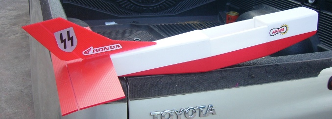 ปีกใช้โฟม 1.5 ปอนด์ ใช้ลวดความร้อนตัดตามริปไม้ airfoil แบบ Flat เหมือนเครื่องบินฝึกทั่วไป ความกว้างปีก 6 นิ้ว ยาว 36 นิ้ว มุม dihedral ประมาณ 4 องศา