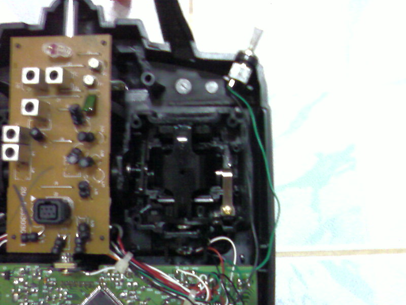 จากนั้นการเพิ่มช่อง 5 คือย้ายสายไฟเส้นสี เขียวไปต่อกับจุด S2 ที่อยู่ข้างจุดเดิม จากนั้นเอาสายดำไปต่อกับจุด G8 ที่อยู่ข้างจุดเดิมเหมือนกัน เท่านี้ก็เรียบร้องใช้ปุ่ม trainer เป็นช่อง 5 ได้เลยจะปล่อยร่ม หรือ ทิ้งระเบิดก็ได้ แต่ต้องหา ภาครับทีเป็น 6 ช่องมาใช้ด้วยนะครับ จบข่าว....