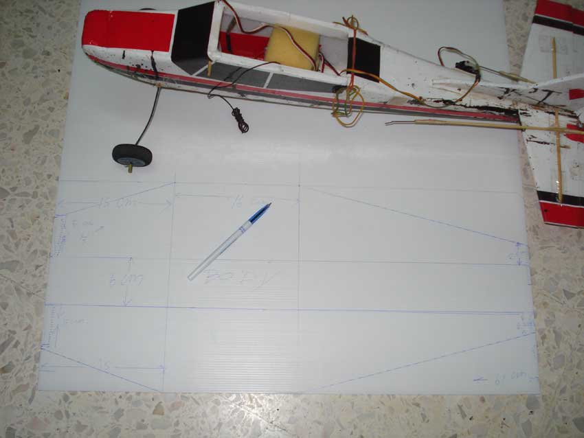 เมื่อวัดได้แล้วก็ขีดเส้นตามแนวแล้วก็ตัดเหลือเฉพาะตัวเครื่องบิน