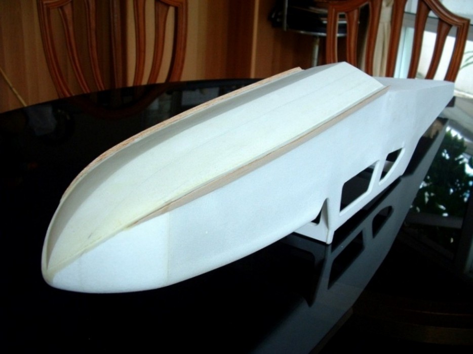 ....ท้องเรือเลยครับ โฟมแผ่น 6 มม. ซ้อนกัน แล้วขึ้นรูปเหมือนใบเตย แล้วดัดเข้าหาหัวเครื่อง ขัดแล้วเคลือบด้วยEpoxy สำหรับโฟมโดยเฉพาะ (แพงใช้ได้) มีขายที่ร้านเหมาครับ ส่วนฟินข้างเป็นไม้บัลซ่าดัดน้ำแล้วเป่าลมร้อนยึดด้วย Epoxy เช่นกัน ทำยากมากครับ กว่าจะเนียนขนาดนี้เสียไปหลายชิ้น และถ้าไม่เนียนตอนหุ้มผิวจะมีปัญหามากครับ ไม่ทำแบบนี้ก็ไม่ได้เพราะผมลองมาหลายแบบแล้ว