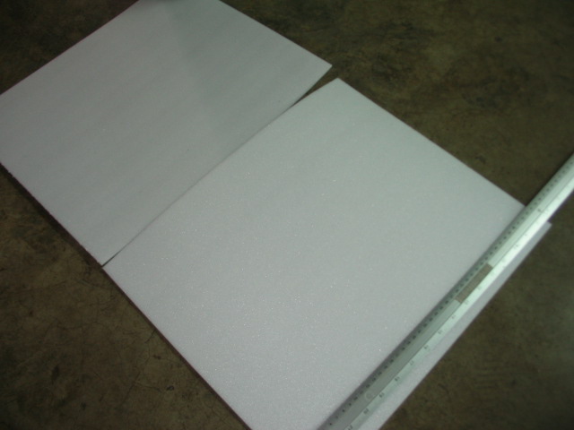 ขั้นตอนแรกเลยนะครับตัดโฟมขนาดกว้าง38เซน ยาว45เซน 2แผ่น