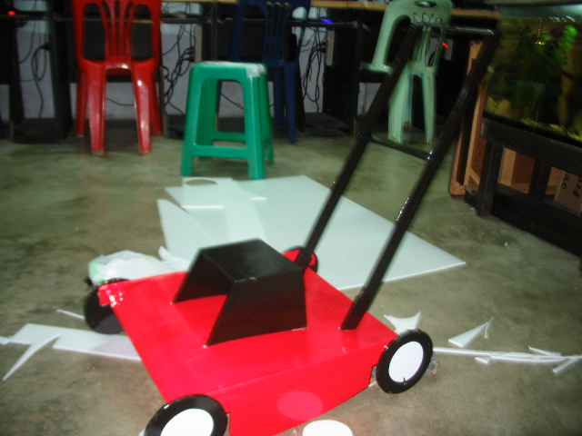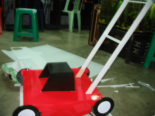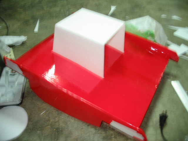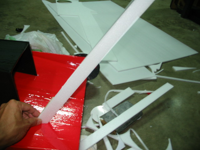 เสร็จแล้วเอาติดสีก่อนนะครับ แล้วตัดโฟมสีขาวทำเป็นตัวเครื่องยนต์ตรงกลาง