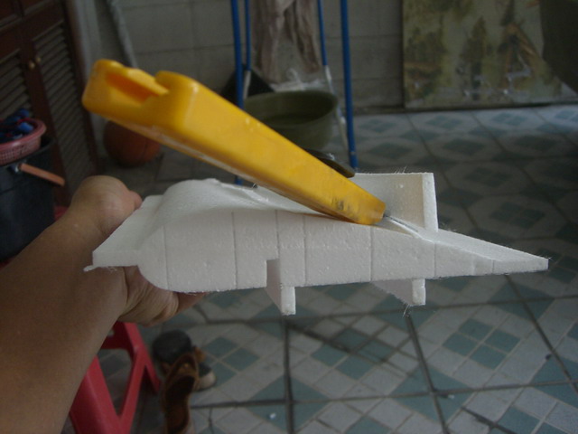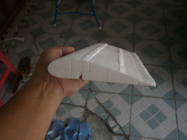 โคตรเปลืองโฟมเลยครับ ของผมแท่งเดียวที่เห็นตัดได้1คู่เลยนะครับ .. แถมยังตัดย่นไมเป็นท่า...เพราะวิธีการทำแบบสำหรับเซาะร่องมันผิดครับ นี่ขนาดตัดแบบ2ฝั่งเท่ากันนะเนี่ย ถ้าเป็นปีกพวก Extra เล็กข้าง ใหญ่ข้าง ก็จบกันพอดี หมั่นเขี้ยว..........อยากบอกวิธีการทำที่ถูกต้อง..............................อึดอัดจริง.