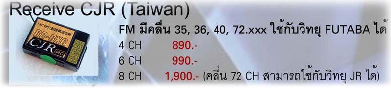 ส่วนวิทยุ JR คลื่น 35 36 40 ใช้ได้กับรีซีฟ cjr 4 ch cjr 6 ch และ cjr 8 ch แต่ถ้าวิทยุ JR คลื่น 72 ต้อง ใช้ตัว cjr 8 ch ตัว