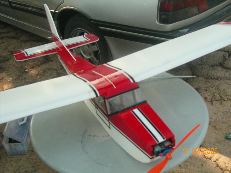 เครื่องบินลำแรกที่ทำ เป็นเครื่องบินเทรนเนอร์ลำน้อย ปีกประมาณ 90 เซ็นต์ มมอเตออร์ 180 ทดเกียร์ 1ต่อ4 ใบ 1047 แบต na-mh AAA 7 เซล เลี้ยวรัดเดอร์ น้ำหนักพร้อมบิน ประมาณ 350 กรัม หลังจากเล่นเครื่องบินมาหลายแบบ ปรากฎว่าลำนี้เป็นลำที่บินง่ายที่สุดครับ ถ้าลมไม่แรงจนเกินไป