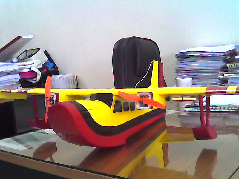 ทำจากโฟมแผ่นหนา 5 มิล ขุมพลังใช้มอเตอร์ กระดุม 2 ลูก สปิด 12 แอมป์ แบ๊ต 800 mAh x 2 บินเกิน 10 นาที อาการบินนิ่ง เกาะอากาศได้ดีครับ