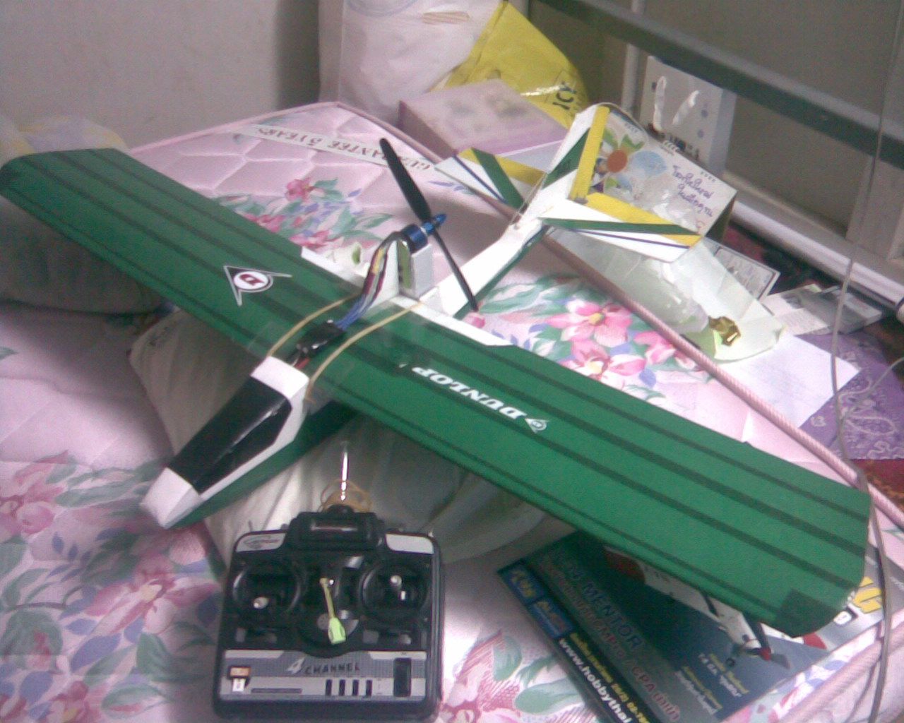 เป็นเครื่องบินแบบขับหลัง ที่ทำเพราะที่แรกบินเทรนเนอร์มีมอเตอร์อยู่ด้านหน้าแล้วเวลาตกใบพัดชอบหักเลยลองสร้างแบบที่เห็นเล่นดู โดยใช้ลำตัวเดิมมาดัดแปลงครับ และอุปกร์เดิมด้วย