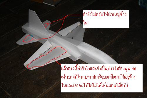 ถ้าปีกโฟมแบบแผ่นเดียวผมเห็นเขาใช้ท่อคาร์บอนหรืออะไรที่ทดแทนกันได้วางลงบนแผ่นโฟมครับ ถ้าเป็นปีกที่ใช้แผ่นโฟมสองแผ่นประกบบนล่างโดยมีท่อคาร์บอนเสียบอยู่ที่กลางแผ่นปีกแบบนี้ก็จะมีลักษณะเป็นแอร์ฟอยด้วยตัวของมันเองครับ ที่เห็นในแพนหางระดับหรือที่รู้จักกันว่า ปีกหลัง นั้นผมว่าเขาใช้วิธีเซาะร่องด้านใต้ของแผ่นปีกแล้วฝังท่อลงไปซักครึ่งแล้วยึดกันด้วยกาวบวกเทปใยสัปปะรดครับ....