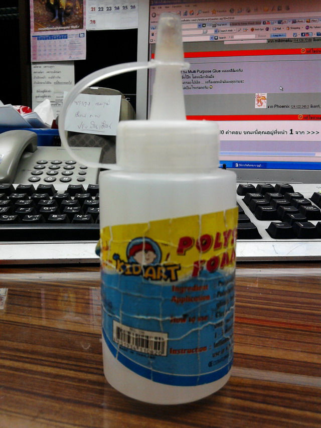 ใช้กาวของ 3M เบอร์ 77 เป็นแบบสเปร์ยครับ ใช้กับโฟมโดยเฉพาะ มีขายตามร้านเครื่องเขียนครับ เหมาะสำหรับทำเครื่องลำใหญ่ ต้องการติดกาวเป็นบริเวณกว้าง และให้ปริมาณกาวบางสม่ำเสมอ ติดได้รวดเร็ว เนื้อกาวพ่นออกมาลักษณะเดียวกันกับ "ยากันยุง" เป็นละอองบางๆครับ