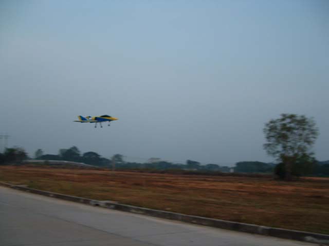 ตากล้องพยายามจับภาพตอนที่เครื่องบินวนกลับมาทางซ้าย ได้มาเท่านี้ล่ะครับ แต่เครื่องก็บินไม่เร็วเท่าไรนะครับ ต่อไปก็จะเป็นการทำโลว์พาสกันละครับ