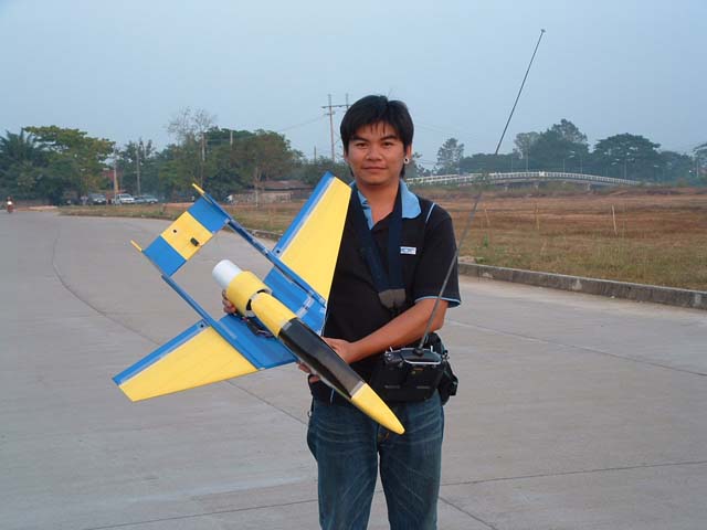 หลักจากที่ทำชุดหางใส่เข้าไปเป็นที่เรียบร้อยแล้ว ก็ทำสีด้วย OPPเทป ซึ่งสีที่ใช้ในลำนี้ก็ยังแบแบบเดิม คือ น้ำเงิน เหลือง เพราะว่า สวยดี และมองง่ายเมื่ออยู่บนฟ้า