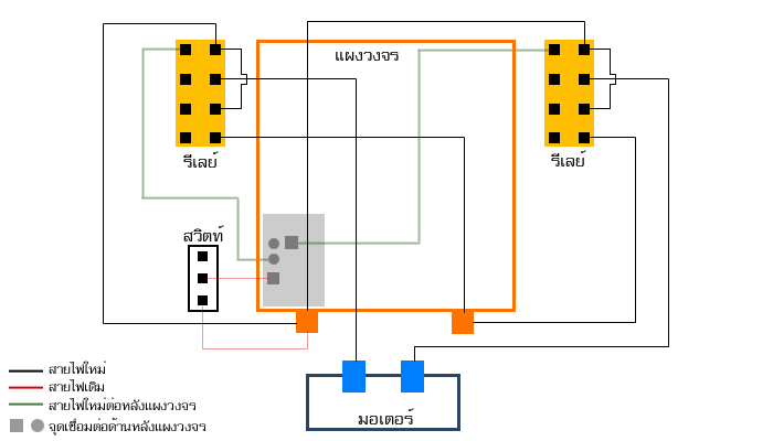 แถวบ้านหาซื้อ6ขาไม่ได้ครับมีแต่8ขาเลยซื้อมาลองต่อดูตามภาพรถก็วิ่งได้ครับแต่ไม่แรงขึ้นเท่าไหร่อยากรู้ว่าต่อวิธีนี้ถูกต้องหรือป่าวผมใช้รีเรย์ตัวเดียวแค่เส้นเดินหน้าอย่างเดียวมอเตอร์เดิมอะไหล่เดิมมากับรถทุกอย่าง+ถ่านชาร์จ เพิ่มแค่รีเรย์3v 8ขา(ตัวสีแดง)