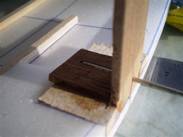 จากนั้นก็เอาไม้ 5 ม.ม.ที่ผมมีอยู่ขนาดเดียวมาซอยเป็นเส้นๆแล้วแปะกาวลงไปครับ (ลำนี้ไม่ทำกงลำตัวนะครับ)