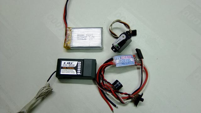 ใช้อุปกรณ์เหลือๆจากเครื่องบินมาทำเล่นอีกแล้ว มีเซอร์โว 9 กรัม รีซิฟเวอร์ตัวเล็กE-Sky สปีดธรรมดา ของ TD480 แบ็ต Li-po 1000 มิลลิแอมป์
