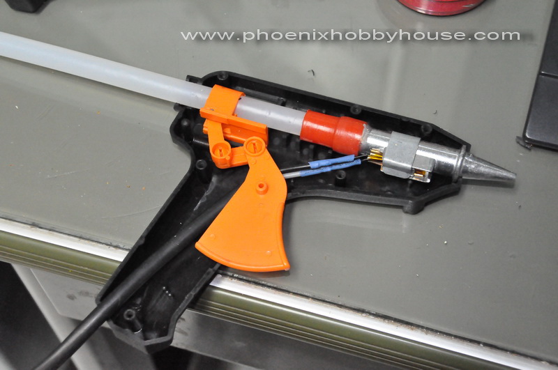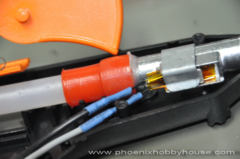 ยึดสายไฟให้แน่นไม่ให้ขยับหรือให้ตัวได้ด้วยยางของเดิมที่มีมากับด้ามปืนนั่นแหละครับ ... ดัดแปลงนิดหน่อยตามภาพเลย