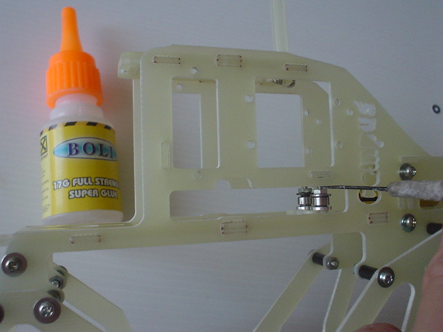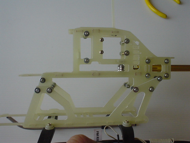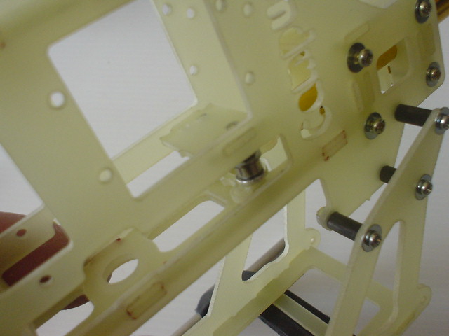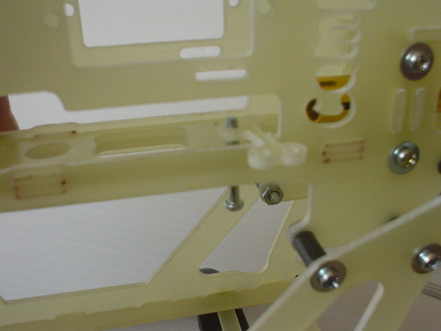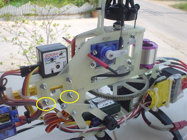 รูปนี้ เป็นตำแหน่ง น็อตต่าง ที่ใช้ยึดโครง และ เซอร์โว สำหรับน็อตยาว ให้หมุน ล็อก พอแน่น ไม่ต้องถึงกับบีบเฟรมจนโก่ง แล้วแต้มด้วย กาว CA หรือ น้ำยาล็อกเกลียว ครับ