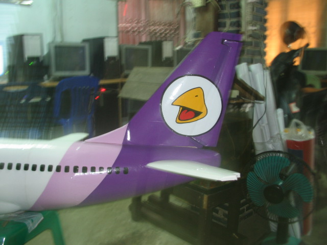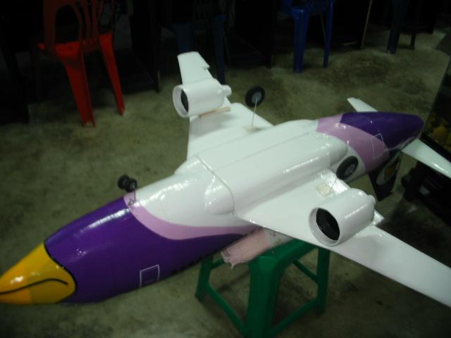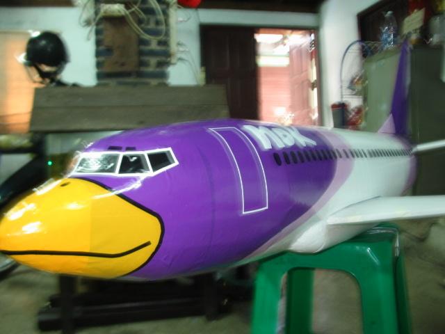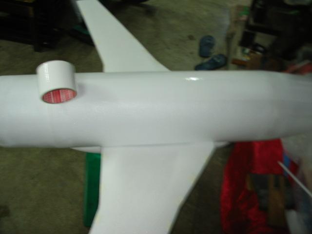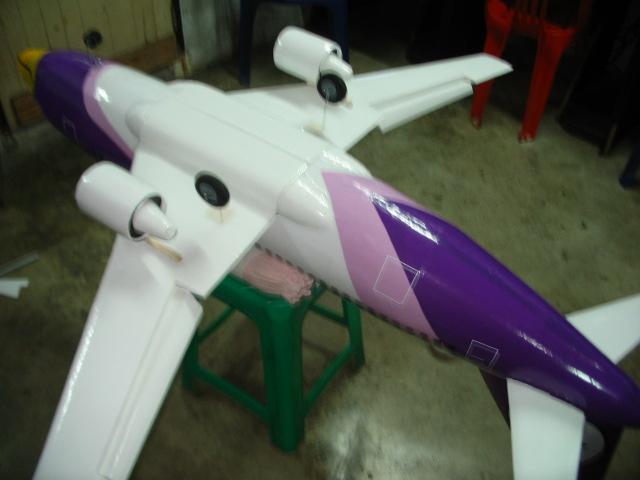ทำสีติสีขาวรองพื้นก่อนนะครับ ลำนี้ว่าจะทำลายนกแอร์แต่หาอ๋อปเทปสีนี้ยากเลยใช้สติกเกอร์ ซื้อจากฟิวส์เจอร์เมตรละ50 บาท เอาสีอ่อนที่สุดลงก่อนนะครับ
